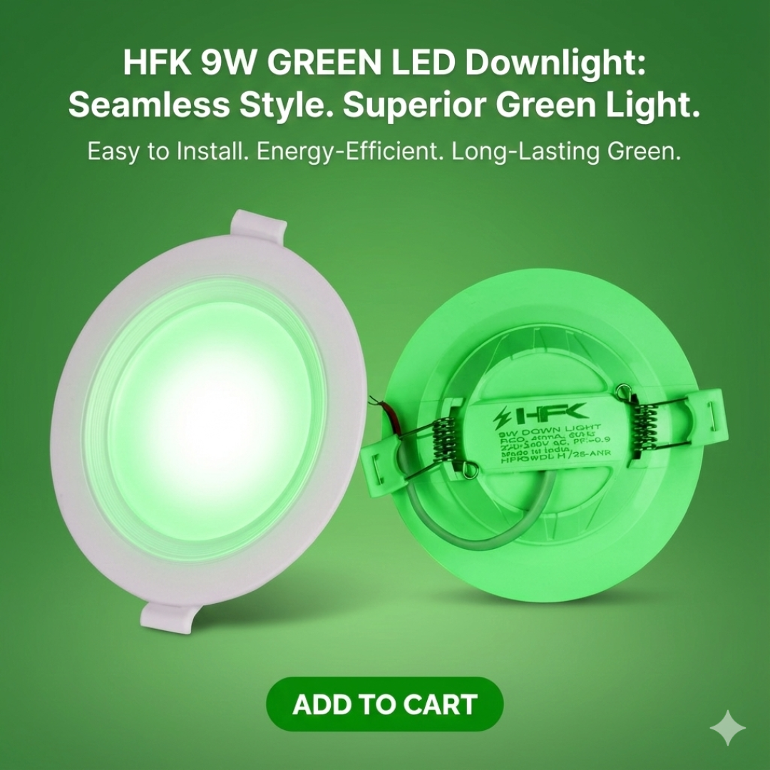 Product Description Sleek Design Meets Smart Illumination Enhance your modern interior with the HFK Glow LED Downlight series. Available in 9W these recessed lights offer a seamless, flush-mount look for your ceilings. Whether you need the 9W Green for a clean home office for decorative accent lighting, the HFK Glow series delivers reliable performance.